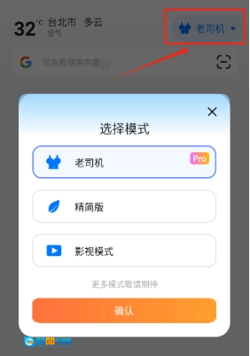 1、打开哪吒浏览器,选择模式,右上角可切换。
