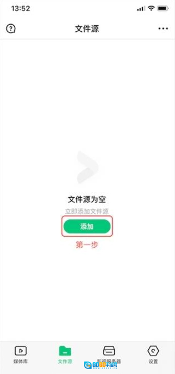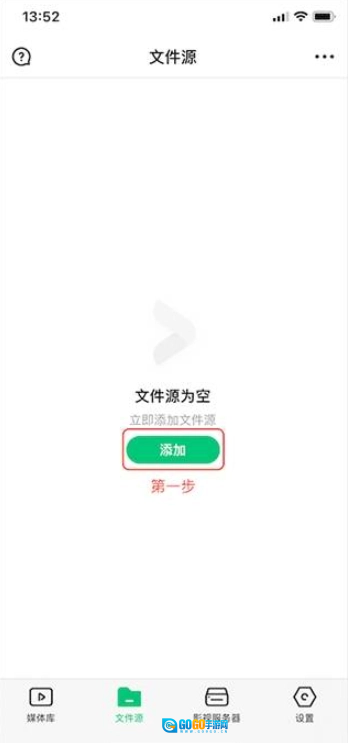 第一步:首次打开VidHubApp后,能看到“媒体库”对应的添加按钮,点击该“添加”按钮即可。