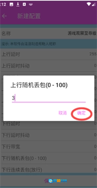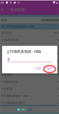 5、自行设置好名称、上行延时、上行随机丢包参数等,然后点击“确定”按钮。