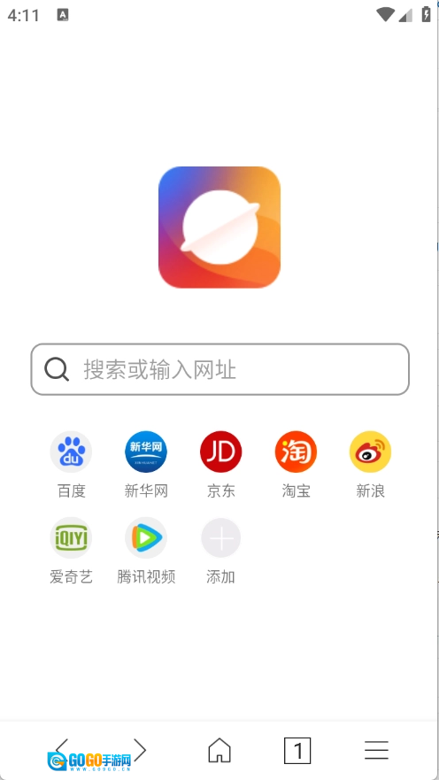 2、进入首页后,在输入框中输入网址,或者点击网址进行搜索。