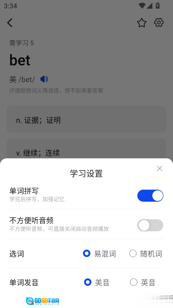可依据个人喜好,挑选并调整学习模式,比如回忆模式、拼写模式、测试模式之类的。