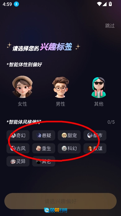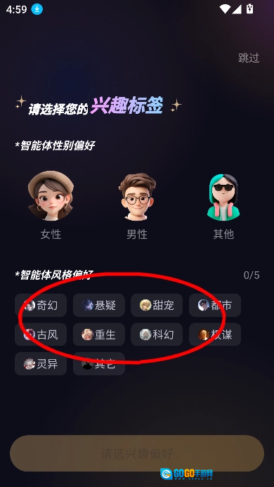 2.选择兴趣标签进入主页。