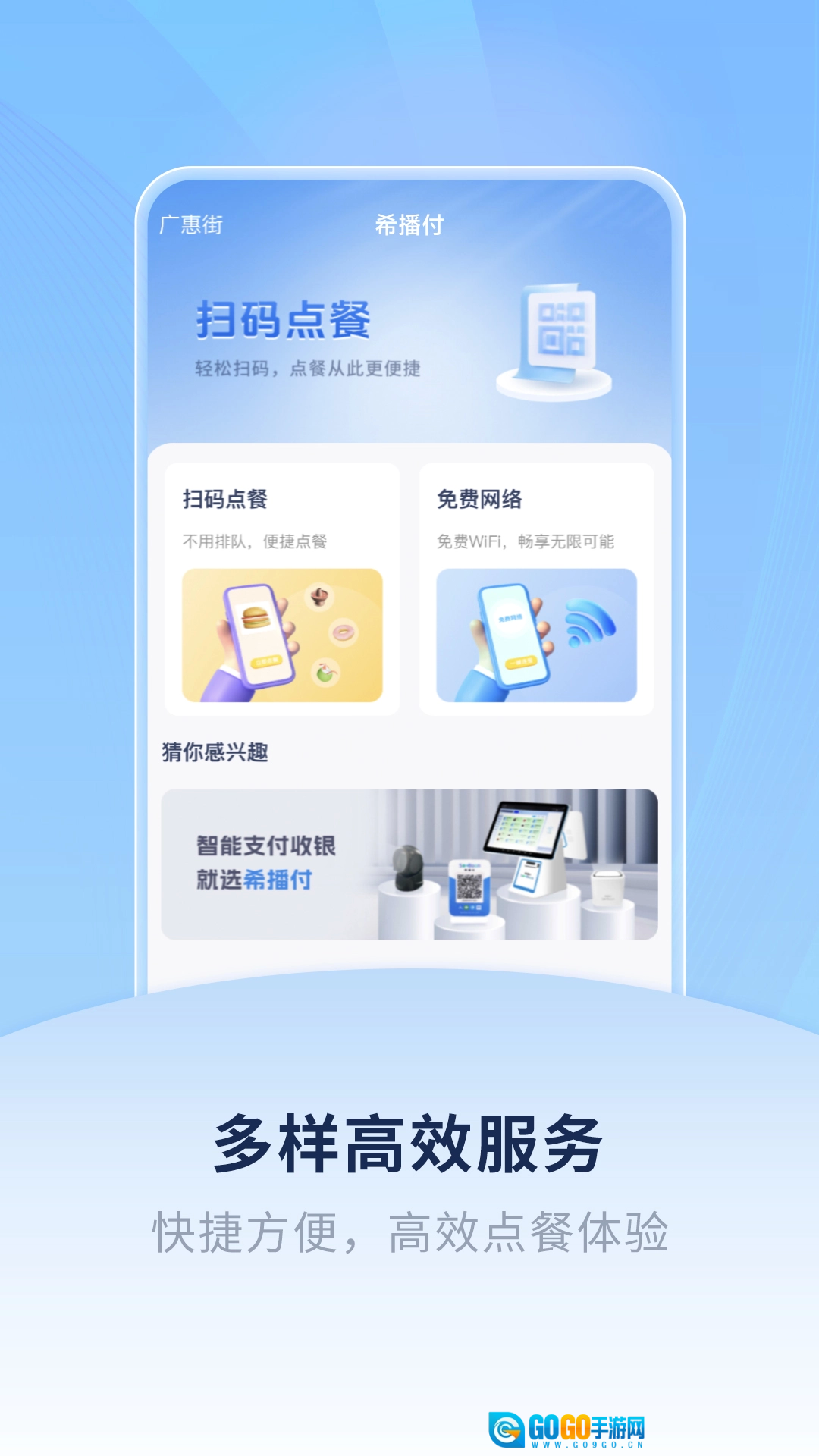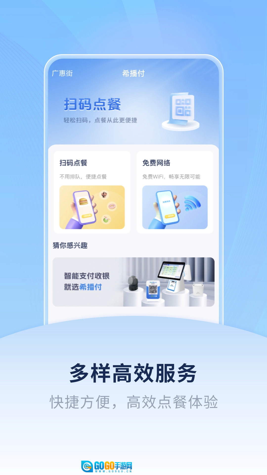 掌上希播是一款为大众用户打造的便捷服务平台,用户可以通过它进行扫码点餐、在线购物、扫码支付,还能享受送货上门服务;此外,用户也能参与平台发起的各类活动,体验一站式的生活服务。