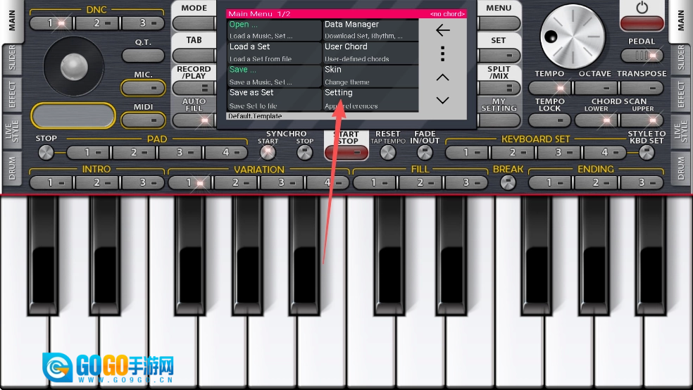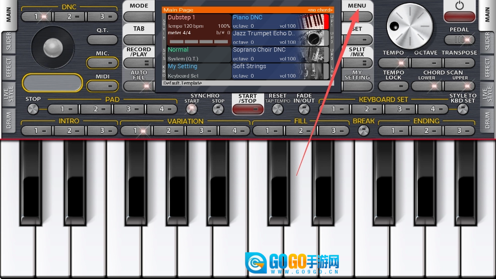 1、打开org2026手机电子琴,点击MENU