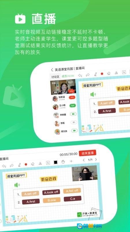 可以实时统计选择题、判断题等题型的答题情况;具备多人语音互动的功能;借助移动设备就能完成白板教学与课件演示,不用再来回奔波;投屏教学里融入了随机点名、课堂测试等互动环节。