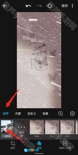 2、点击“推荐”选项,接着点击“一键雪景”选项就可以了。