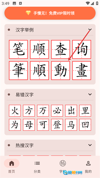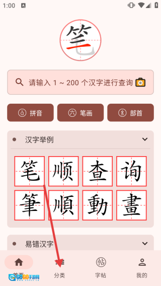 进入首页,选择目标汉字。