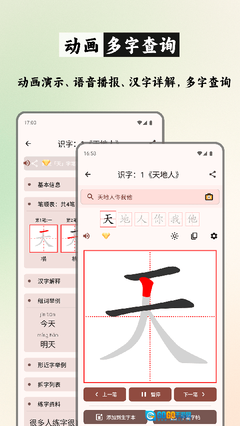 笔顺历史清晰陈列:完整记录每个汉字笔顺演进过程,辅助理解书写逻辑建立正确记忆路径。