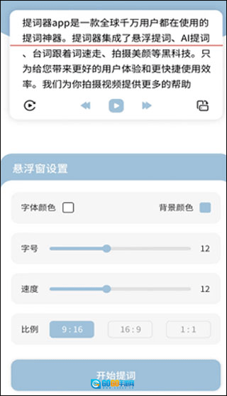 2、提词板模式设置:具备全屏提词、AI智能语音提词、横屏旋转、字体与背景颜色调节等功能