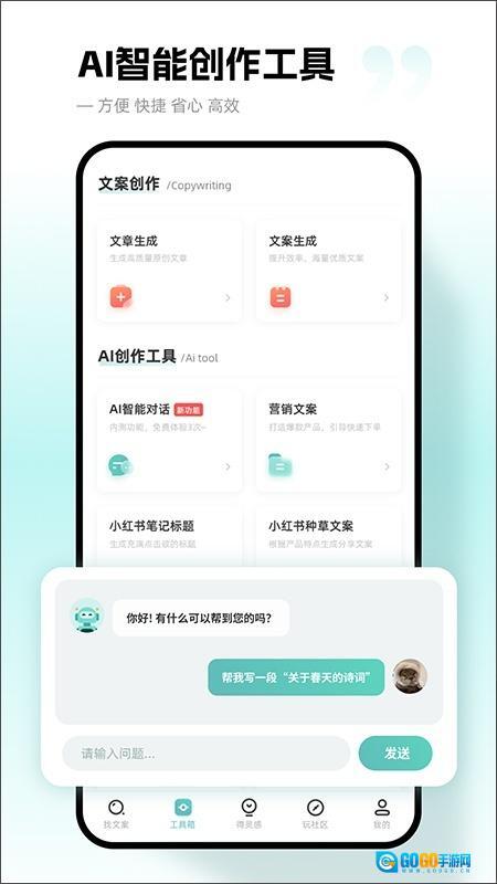 配备了文案智能生成功能,用户仅需输入关键词,就能自动得到文案内容。