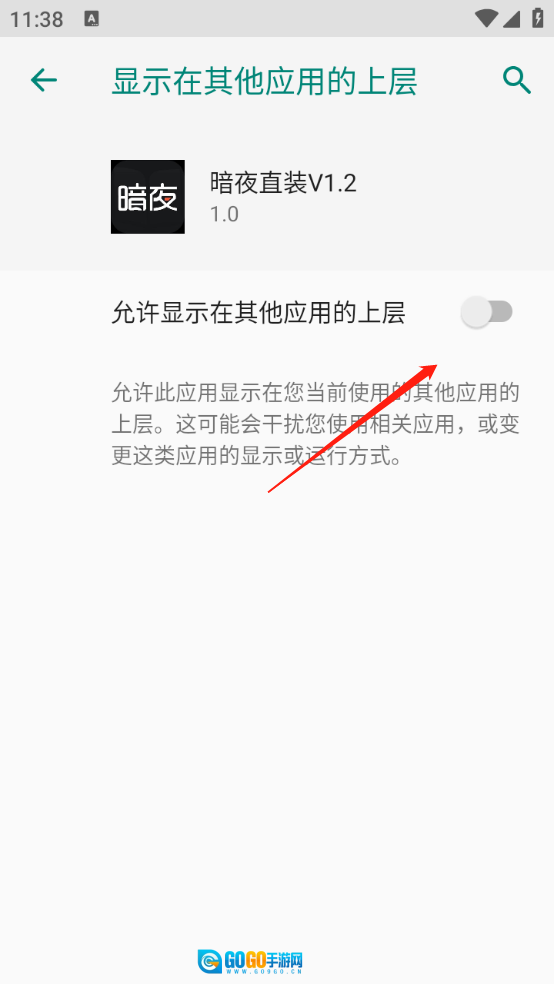 安装好暗夜直装V1.2,然后打开软件,点击开启悬浮窗权限。