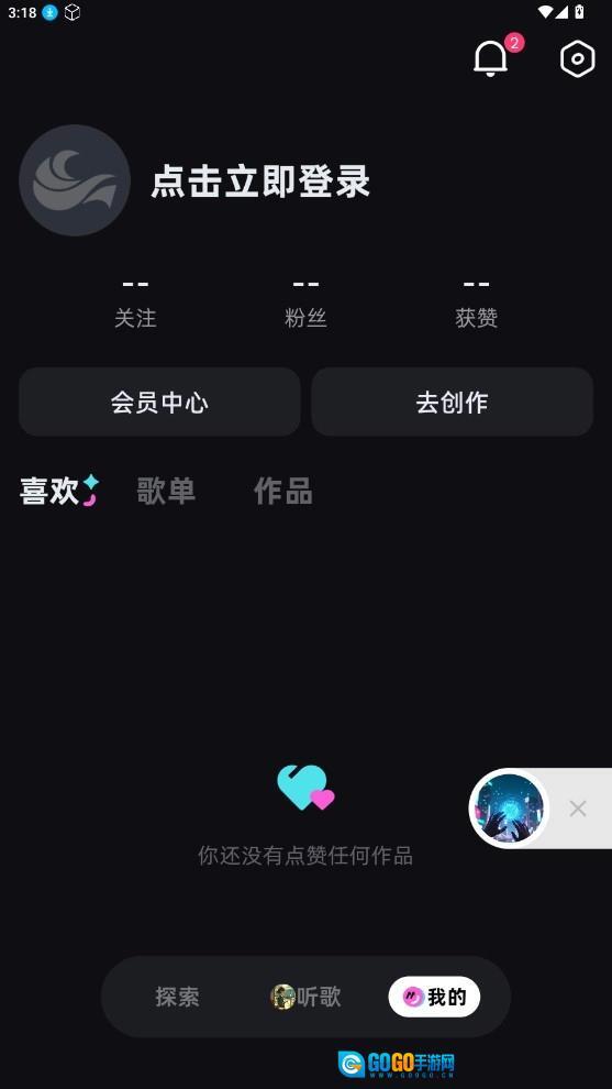 5、在我的页面中,用户可以查看自己标记为“喜欢”的内容、“歌单”以及个人创作的作品,同时也能够通过点击创作页的入口进入创作中心。