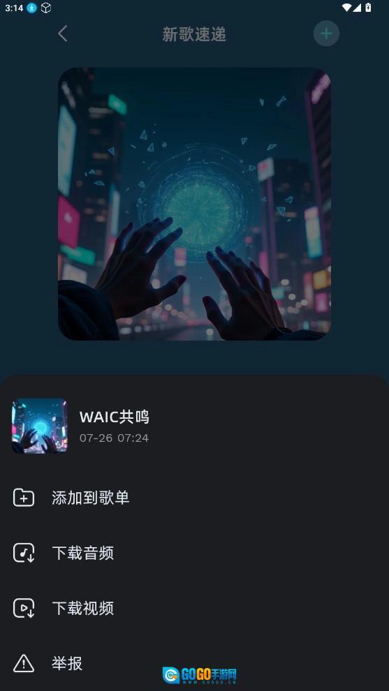 4、播放页面点击右边三个点可添加到歌单、音频等