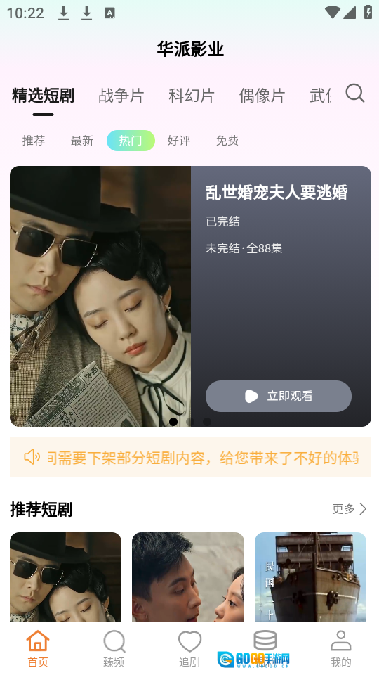 华派视听是一个免费的短剧观看平台,涵盖言情、悬疑、都市等多种类型。平台上所有短剧资源均为正版且完全免费,用户可以对喜爱的短剧进行点赞、收藏和转发。此外,平台持续更新,题材类型十分丰富,并能依据用户喜好进行智能精准推荐,同时支持离线观看功能,让用户随时随地都能享受观看短剧的别样乐趣。