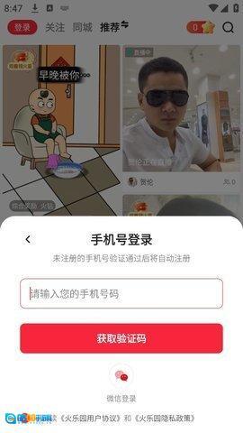 在本页面并安装火乐园,打开,点击左上角登录按钮