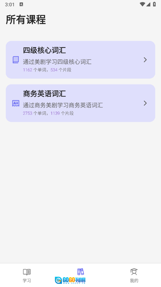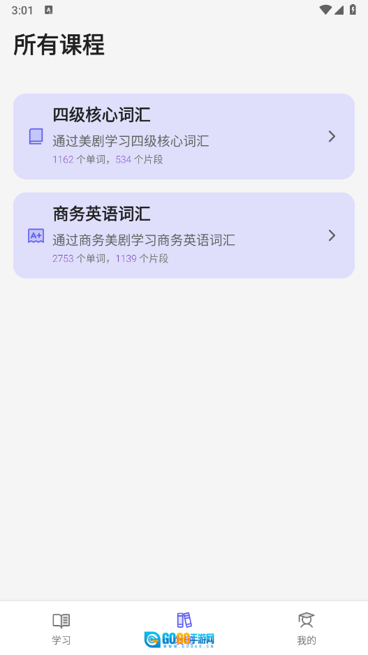 在首页能够挑选希望学习的内容,像司机核心词汇、商务英语词汇之类都包含在内。