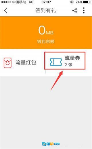 点击“我要兑换”按钮后,进入新页面就能看到当前的流量券数量,接着点击“流量券”图标即可。