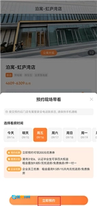3、最后选定看房时间,点击“立即预约”,之后只需等待门店管家电话联系就可以了。