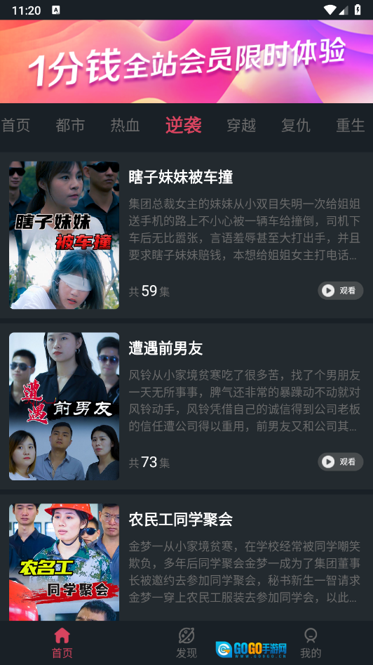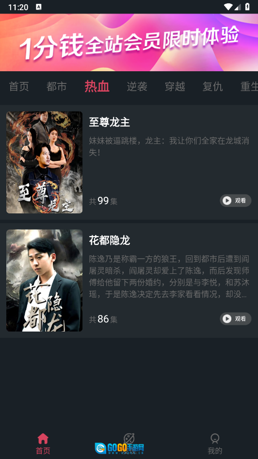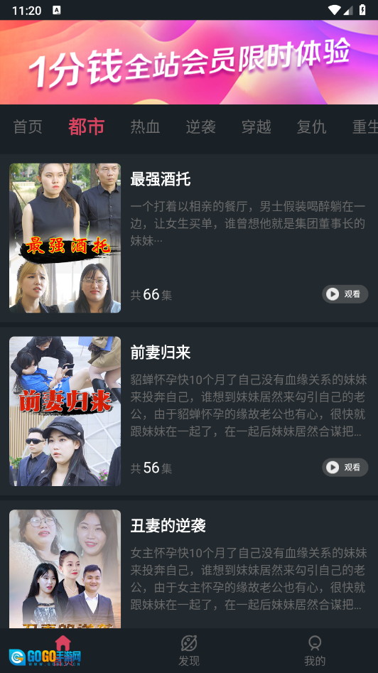 打开软件后,能看到多种多样的短剧类型,像古装、言情和都市题材都包含在内。
