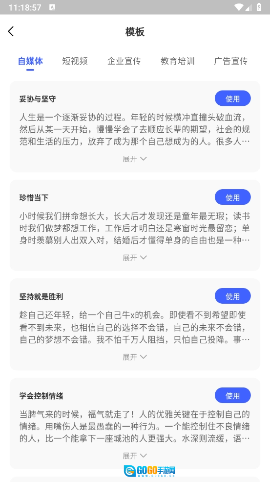 5、点击主页右上角的“模板”选项进入,这里汇集了各行各业的模板,你可以选择免费使用。