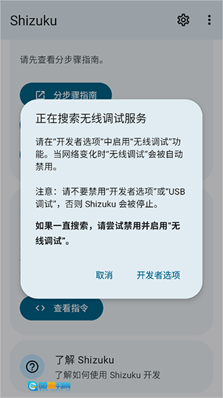 接下来,系统会生成一个配对码,在Shizuku应用里输入这个配对码完成配对操作,就能成功激活Shizuku服务了。