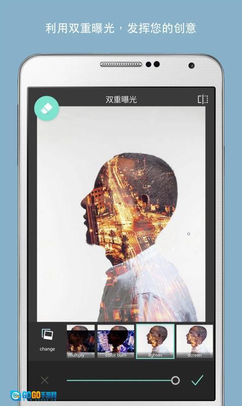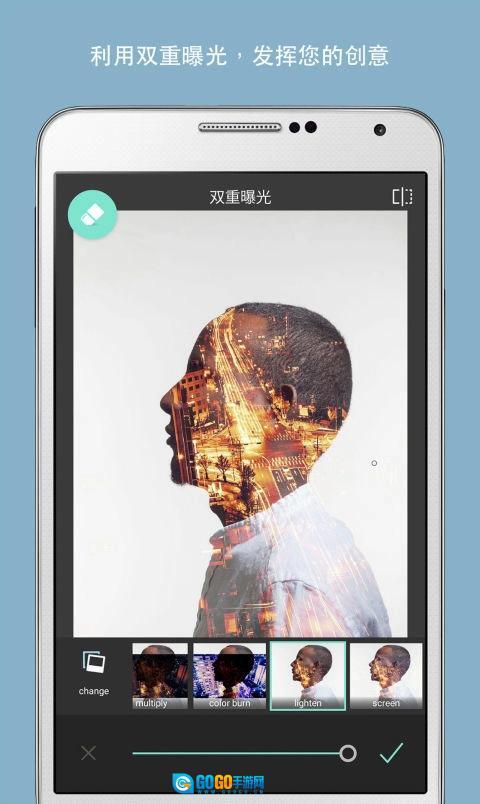 3.运用“双重曝光”功能,把多张照片进行分层排布与融合,从而得到别具一格的造型。