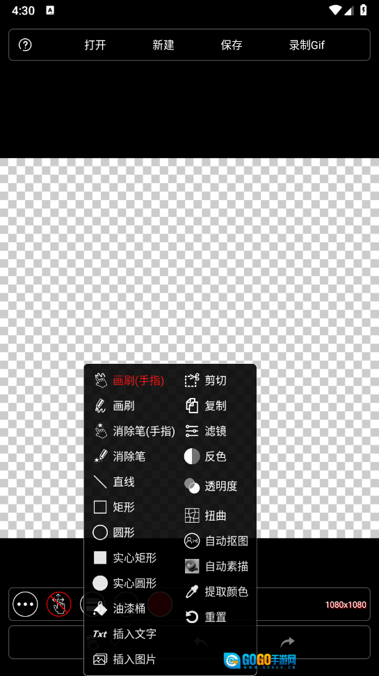 打开软件后,界面会呈现透明底色,此时可点击“创建”按钮,对所需尺寸进行设置。