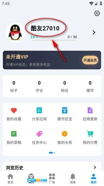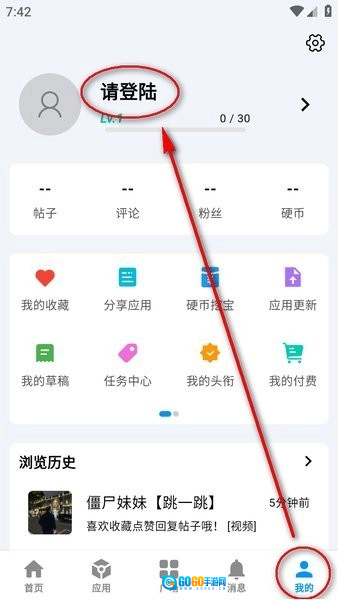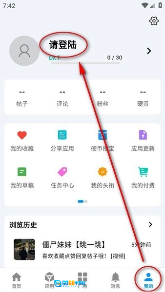 在12365平台安装酷玩应用,启动该软件后,点击界面右下角的“我的”选项,接着点击左上角显示的“请登录”按钮。