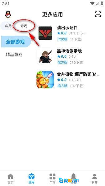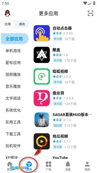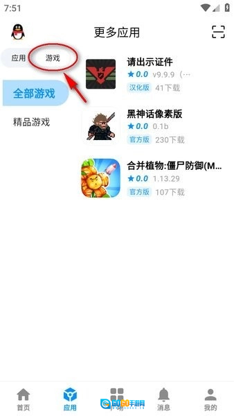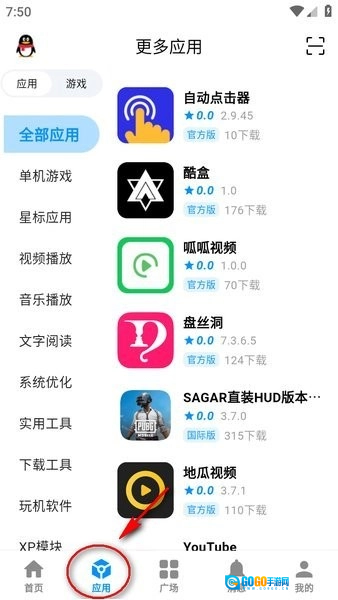 也可以点击底部的第二个选项“应用”,这样就能进入应用合集页面。