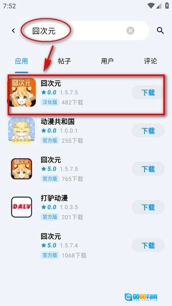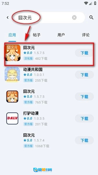 你也可以在“首页”顶部的搜索框里搜索所需应用,例如囧次元。