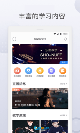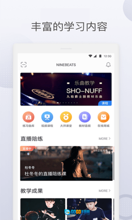 九拍陪你练是一款兴趣学习类软件,主要用于辅助学生开展音乐学科的练习与学习活动。该软件由九拍教育科技集团研发,能与线下校区形成联动,为爵士鼓、吉他等乐器学科的音乐教学工作提供多维度的支持,同时它也是“九拍云智学系统”里的关键构成部分。