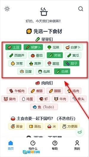 挑选自己喜爱的食材,如果用户更偏好素菜,那就直接点击想吃的素菜食材。