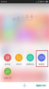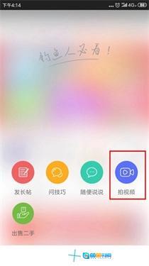 首先我们进入软件分区的首个功能分区,在这个区域里,我们只需点击屏幕右下角的加号按钮,就能发现一个社区页面点击加号时没有的功能——发视频。接着点击这个发视频选项,我们就可以直接启动摄像头进行录制,录制完成后还能直接上传。