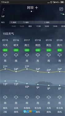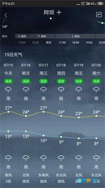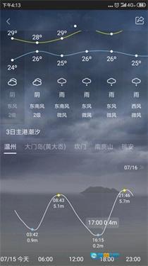 2、在这里我们就能查看一些天气信息,接着向下滑动屏幕,就能看到未来一周的天气预报,这样我们就能挑选一个适合钓鱼的天气出门钓鱼了。