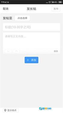 2、在此处点击“发帖子”按钮,即可进入帖子编辑页面。在该页面中,我们输入帖子的标题及相关内容后,点击“发表”按钮提交。待社区审核通过后,帖子很快就会展示在社区内。