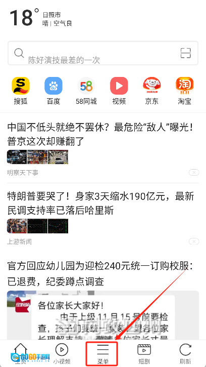 紧接着打开应用程序,点击主界面底部导航栏里的“菜单”选项。