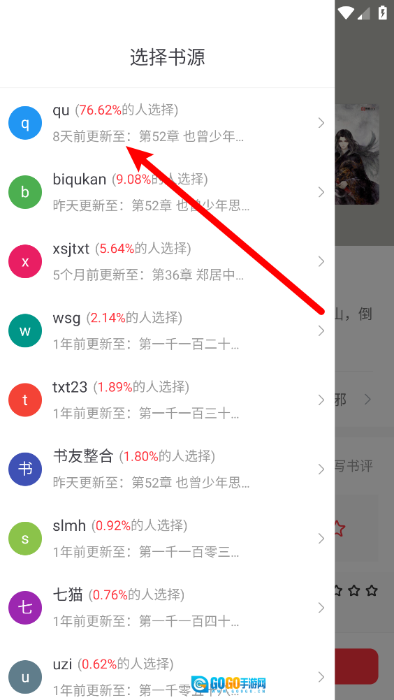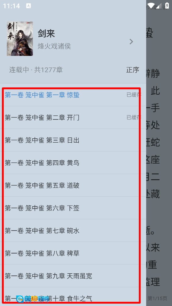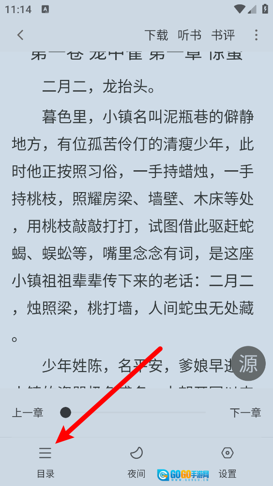 如图所示,点击即可查看目录。通过滑动操作选择对应的章节,就能开始阅读了。