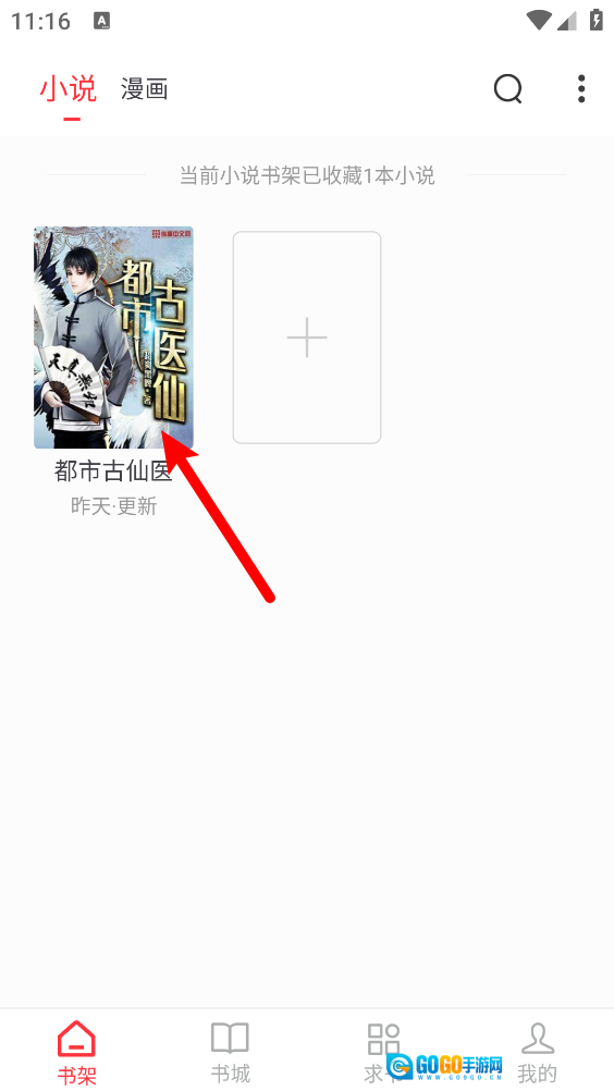 最后回到主页,在书架区域就能查看相应的小说资源。