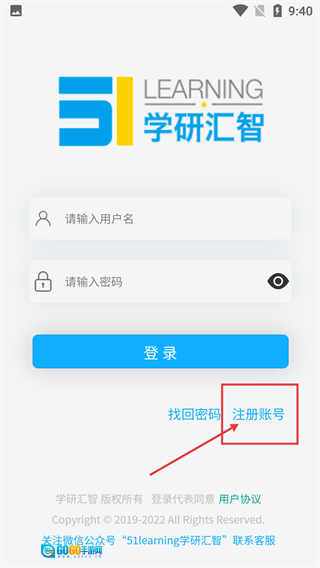 在软件的登录页面,输入框下方设有【注册账号】按钮,点击此按钮即可进入账号注册的前置流程。
