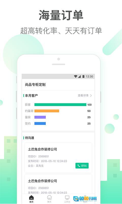 土巴兔商家是一款专门服务于土巴兔平台商家的管理接单工具,借助该工具,商家能够在线接收订单,自主管理各类经营数据;在接单后,还能与客户开展线上沟通,操作便捷高效。此外,工具具备接单提醒功能,可有效防止商家错失订单机会。