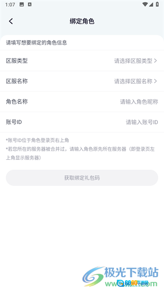 输入角色的详细信息,点击“获取绑定礼包码”按钮就能完成操作。