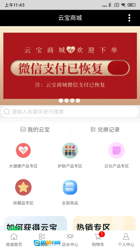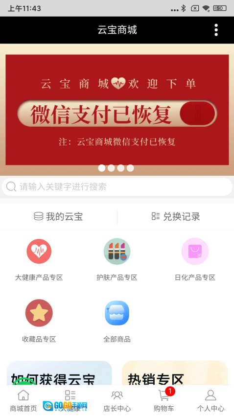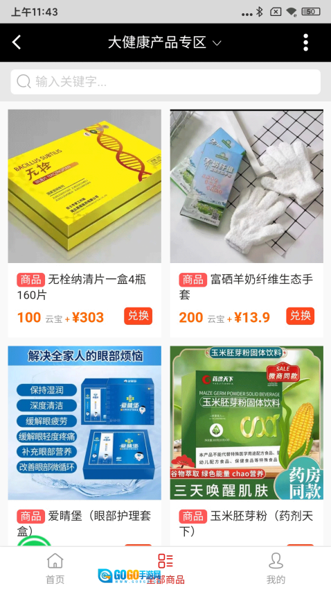 可以自由地在线查找心仪的商品,借助分类功能能快速定位到大健康类、护肤品类或者日化产品类商品。
