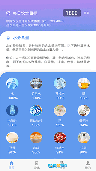 查看每日饮水目标和参考图表,确保健康饮水。