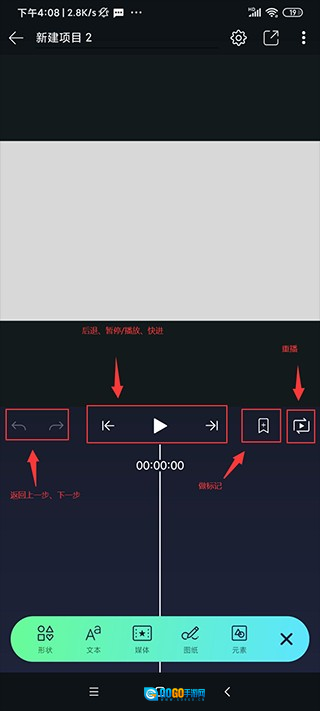 可以添加形状、文本、媒体(包括手机里的图片、音乐与视频)、图纸以及各类元素。