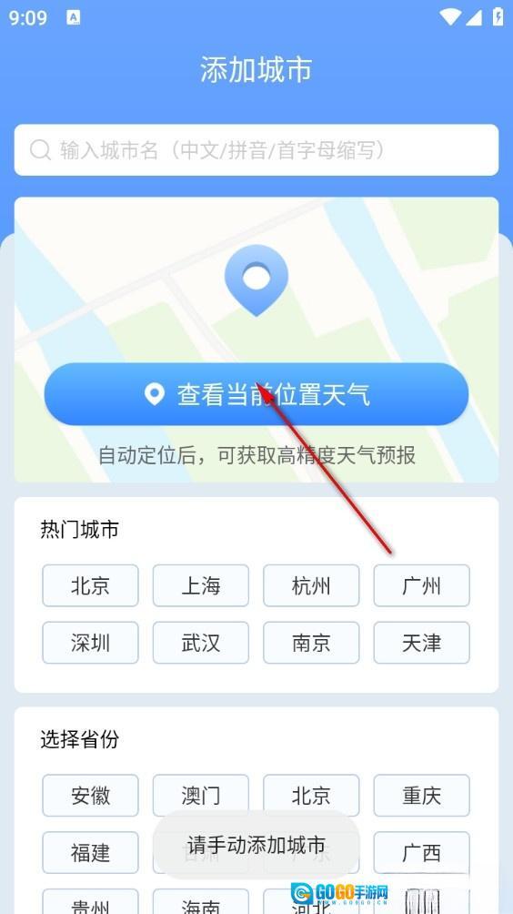 进入软件后点击查看当前位置天气