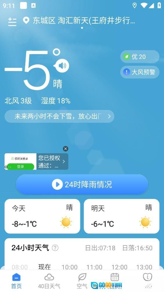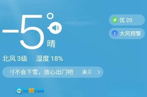 ②实时天气:以动态背景呈现,温度、湿度、风力风向、空气质量等信息应有尽有;