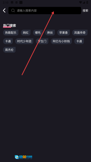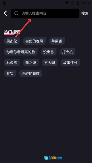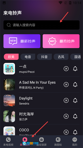 在来电铃声页面,点击顶部搜索框,进入搜索界面。