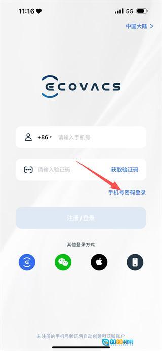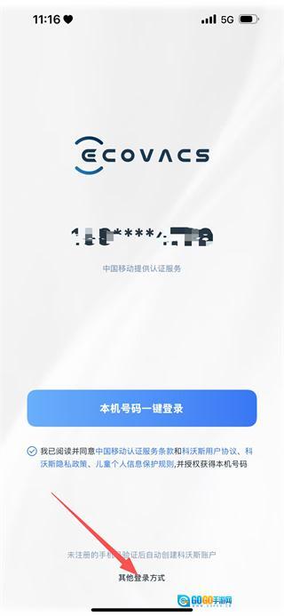 在科沃斯应用的登录界面,点击“其他登录方式”选项,即可进入登录方式的选择页面。