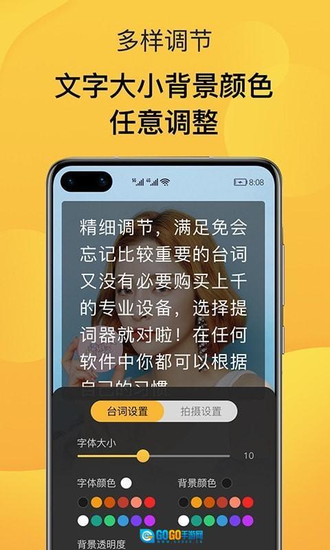 可自由切换屏幕方向,背景透明度可调节,字体样式、滚动速度、文字色彩等均可按需自定义,全方位适配不同使用场景的显示偏好。无论是室内录制还是户外直播,用户都能依据环境光线和拍摄场景调整提词界面的呈现效果,让提词内容时刻保持清晰易读。