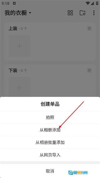 在我的衣橱页面,点击右下角的蓝色加号按钮,就会弹出创建单品的操作菜单。